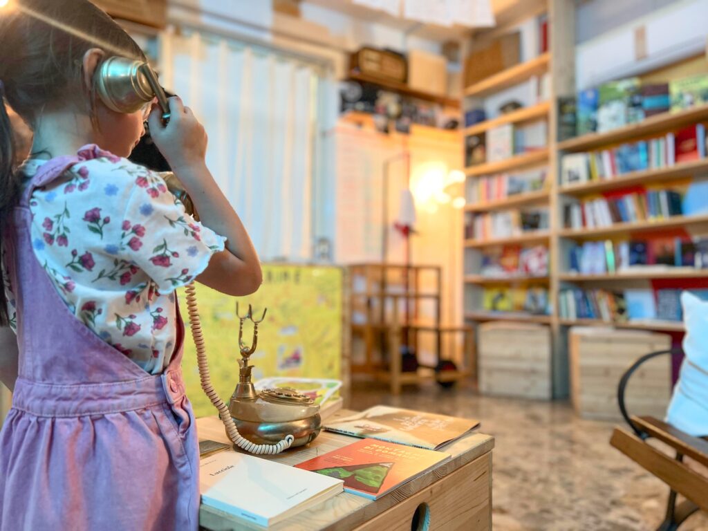 In bottega, tra i libri della nostra libreria in queste settimane stiamo vivendo un nuovo esperimento di narrazione. Abbiamo installato un vecchio telefono, uno di quelli vintage, di quelli con la rotella per digitare, ops, non proprio, per “fare” i numeri.